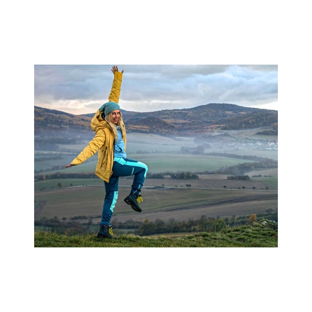 Ideální výbava na běhání, kolo nebo v zimě na běžky. Dámské softshell kalhoty Kala L užiješ po celý rok pro různé outdoorové aktivity. Tyto kalhoty jsou navíc vyrobené z kvalitních materiálů s vysokou pružností a prodyšností pro dostatečný komfort i při vyšší fyzické zátěži. Vlastnosti: Materiál EXTEND SOFTSHELL STRETCH zajišťuje prodyšnou vrstvu mezi tebou a vnějšími vlivy. Materiál je tenký a zajišťuje pružnost a vysoké pohodlí při pohybu. Technologie bez podlepených švů s prodyšností: 10 000 g/m2/24 h chrání před vlhkostí a zároveň odvádí pot. DWR vodoodpudivé vnější ošetření vrchní vrstvy materiálu oděvu zabraňuje prosakování vlhkosti a voda tak okamžitě odtéká po povrchu ve formě kuliček.Doplňkové parametry