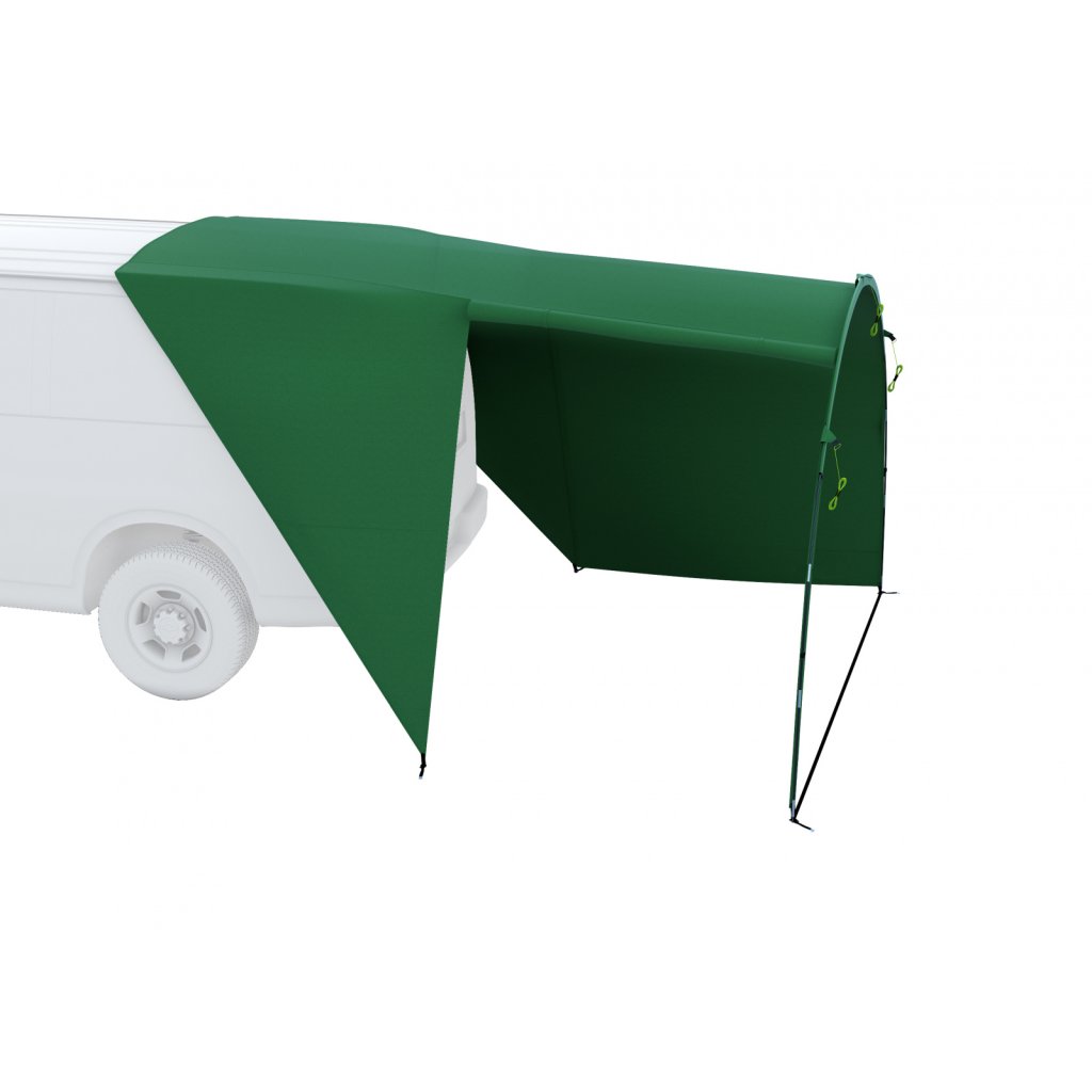 Přístřešek Shelly byl konstruován s důrazem na univerzálnost, a proto ho snadno postavíš ke každému stanu, karavanu nebo například i dodávce. Pomůže ti zvýšit komfort a zvětšit obytný prostor během kempování.