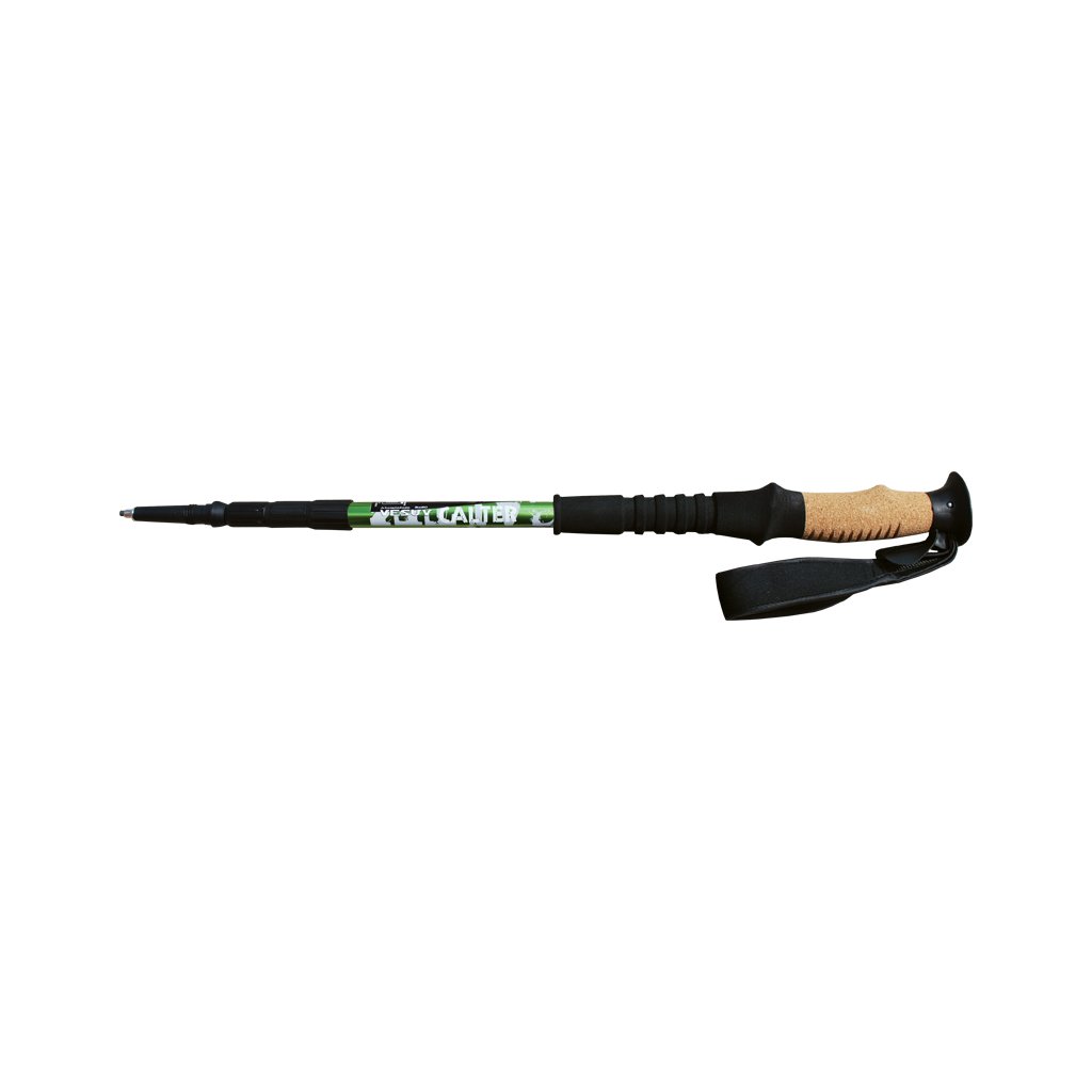 VESUV - prodejní balení 1 ks; 4 sekční, aluminiová trekingová hůl, délka: 60-140cm, průměr:13-20mm, hmotnost: 260g , korková, anatomicky tvarovaná rukojeť, Antishock system s možností nastavení odpružení nebo přepnutí na pevný doraz, neoprenové poutkoDoplňkové parametry